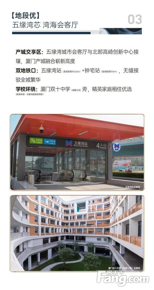 近五缘湾沙滩,近五缘湾湿地公园,双地铁,小区一路之隔就是双十中学湖里分校,楼下就是五缘内湾首社区商业——凤凰商业中心....钟宅板块地理位置非常突出,相当于厦门进岛站,处在集美、同安、翔安三大岛外板块进岛必经之路枢纽位置,能级非常高!未来厦金大桥通车后,地处五缘湾湾芯的钟宅板块其五缘意义更加凸显!加之去翔安机场、五缘湾安踏体育公园、岛东新城其它板块哪哪都不远,未来和钟宅板块内如五缘鲤、书香五缘、天琴海、五缘橖月、五缘湾海等盘共生共长,加上旁边湖里高新创业园带来的人气,生活气息浓郁。全程专车免费接送,享团购优惠价