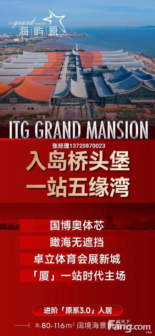 【市政·国贸海屿原】 看房热线:张137+2087+0023(WX同)全程专车免费接送,享团购优惠价 一站近五缘·体育会展芯·湾海住区 一、项目基础信息 产品类型:高层住宅 产品面积:建面约80-116㎡三到四房 装修标准:品质装修 产权年限:住宅70年,商业40年 项目地址:中国·厦门·体育会展芯 【建面89㎡3居】2梯4户,层高2.90米,总楼层28F 【建面112㎡4居】2梯4户,层高2.90米,总楼层28F 【建面116㎡4居】2梯4户,层高2.90米,总楼层33F 【建面92㎡3居】2梯5户,层高2.90米,总楼层31F 人文高地 咫尺馥郁书香 项目周边规划四块教育用地,共规划144班、96班,咫尺规划中九年制学府,片区内双十部翔安校区、双十翔安附属等学府矗立,书香袅袅,沁心悠扬。 现代美学 原系住境 极简线条融汇国际语境,演绎时尚明快的现代美学形筑。建面约80-116㎡天幕海景精品,全明方正,究精工之极,敬献当代高阶人居。