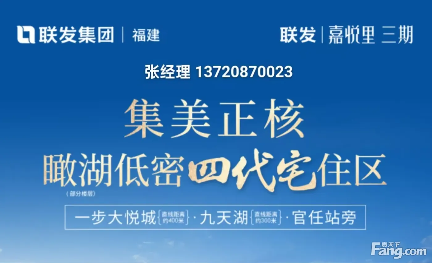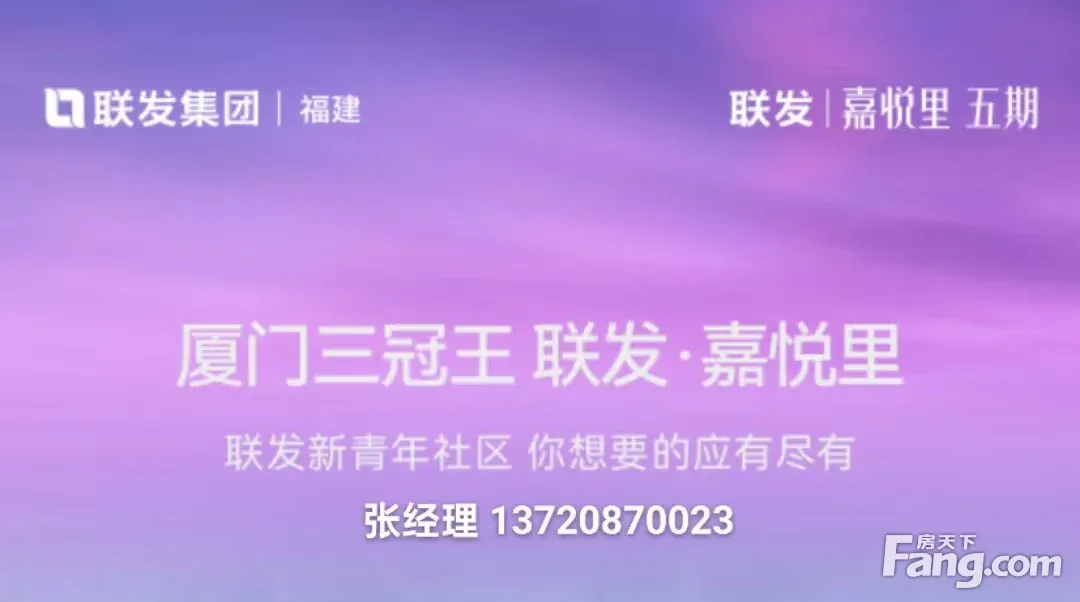 【联发|嘉悦里?五期】 集美极核·新青年·智慧低密住区 大悦城旁·精装2至4房(瞰景高层/花园洋房) 【户型面积】建面约㎡? 【容积率】约2.2? 【绿地率】约35% 【物业管理】联发物业 销售经理张 【 联发·嘉悦里五期 】高能登场? 性能、高性价比,让每个喜欢集美新城的年轻人真正轻松拿下。 66-138㎡2至4+1房 新品尽管对比!款款出色,款款有料,款款爆款! 基本信息 【总 层 高】层 【建筑面积约88平3房2卫】 【建筑面积约98平4房2卫】 【建筑面积约118平4房2卫】 【建筑面积约130平4房2卫】 【建筑面积约138平4+1房丨 看房热线:张137+2087+0023(WX同)全程专车免费接送,享团购优惠价 【联发物业】联发物业 厦门跨岛发展近20年,集美始终按“高起点、高标准、高层次、高水平”建设发展,是厦门六区人口增长最快、人口、最美新城区 集美新城已将成为千亿产业、百万人口、公建集群、繁华商圈、高校云集、人才汇聚,产城学人深度融合、生态宜居的活力之城 看房热线:张137+2087+0023(WX同)全程专车免费接送,享团购优惠价 官方定位的西亭中心区,是集美新城“一心两片两园区”的核芯所在,汇聚集美鼎配资源。