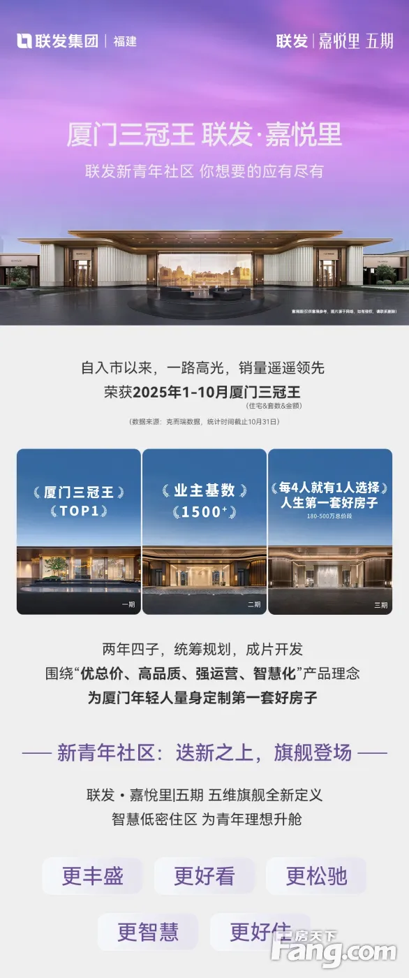 联发嘉悦里五期|集美极核·新青年·智慧(瞰景高层/花园洋房)