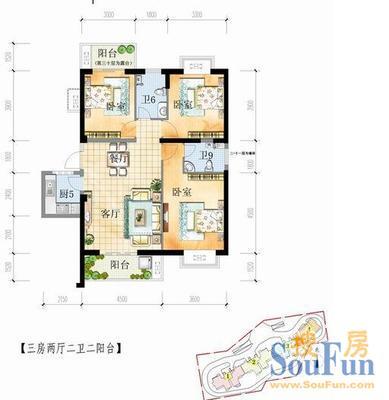 户型齐全,主打户型方正,双阳台,主卧朝南三居