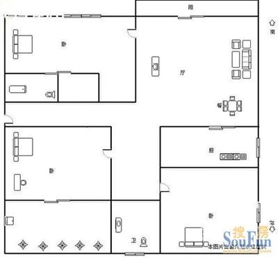 户型齐全,主打明厨,客厅朝南,双卧朝南,主卧朝南二居
