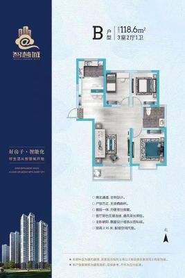 智慧城3室2厅2卫南北朝向105.00万元/套出售