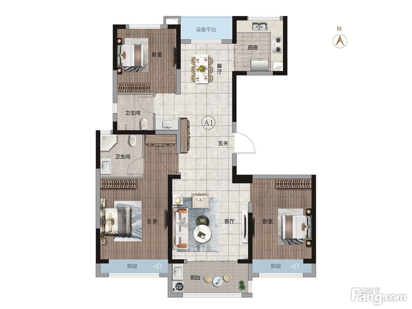 户型齐全,主打南北通透,全明格局,户型方正,采光充足三居