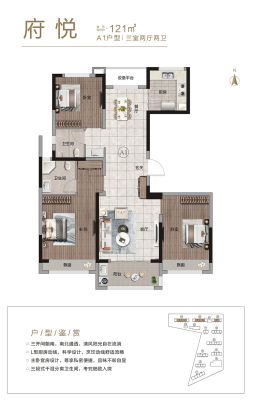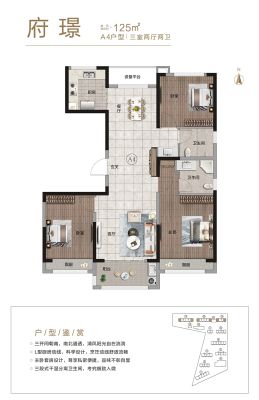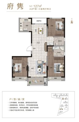 德鸿迎宾府户型主要有121平-127平的南北通透,全明格局,户型方正,采光充足的三居 。