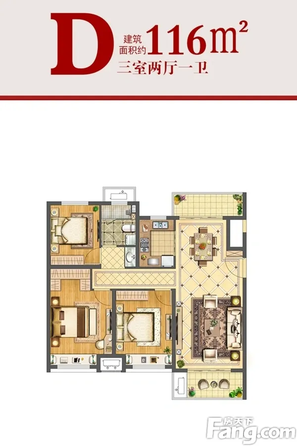 户型齐全,主打户型方正,三开间朝南,U型厨房三居