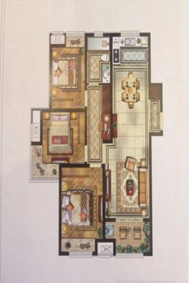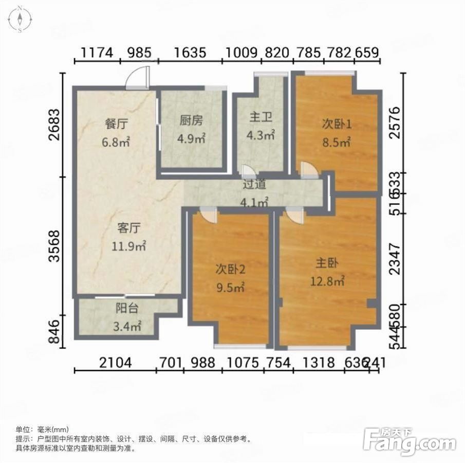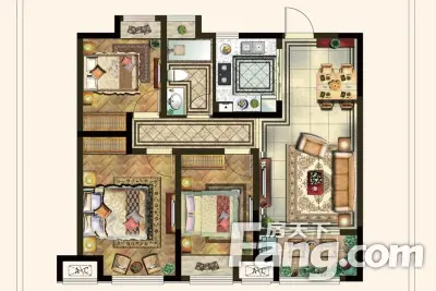 户型齐全,主打主卧带卫,户型方正,客厅朝南三居