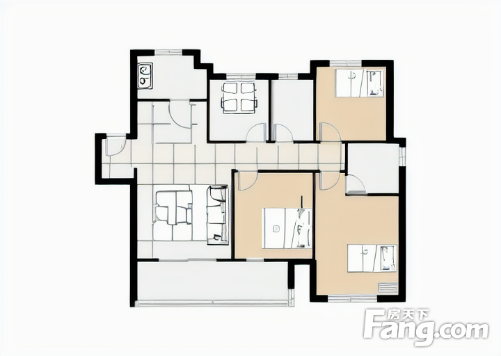 户型齐全,主打明卫,明厨,双卧朝南三居