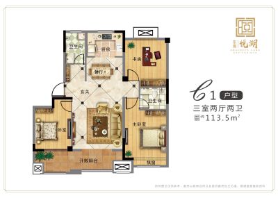 东南·悦湖 3室2厅 南 北