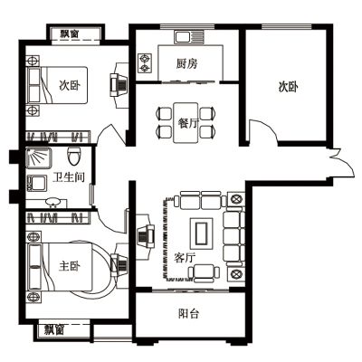 户型齐全,主打户型方正,明厨,客厅朝南二居
