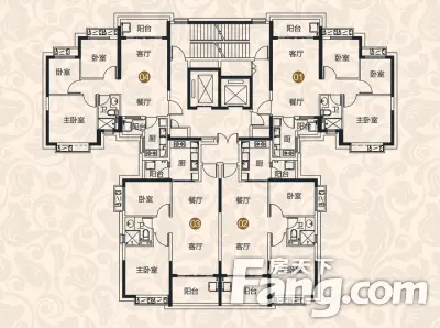 户型齐全,主打南北通透,户型方正,主卧朝南,全明格局,双阳台,餐客分离四居