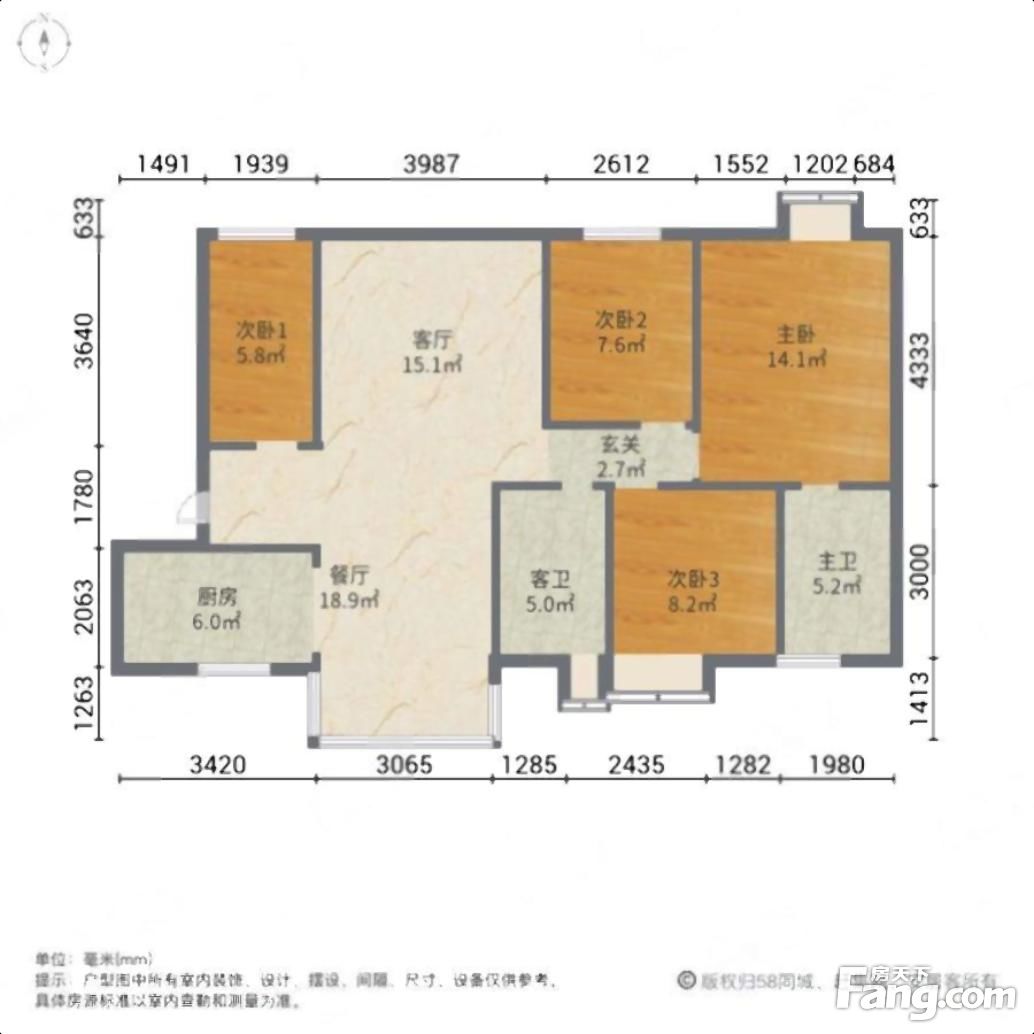 户型齐全,主打全明格局,采光充足,厨卫不对门三居
