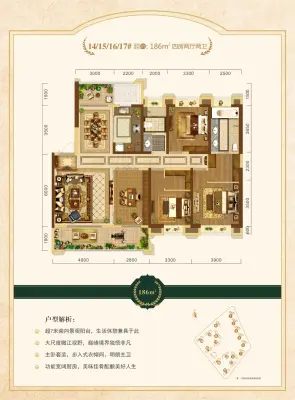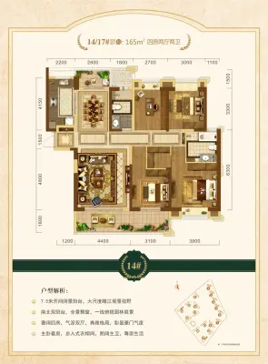 户型齐全,主打南北通透,动静分离四居