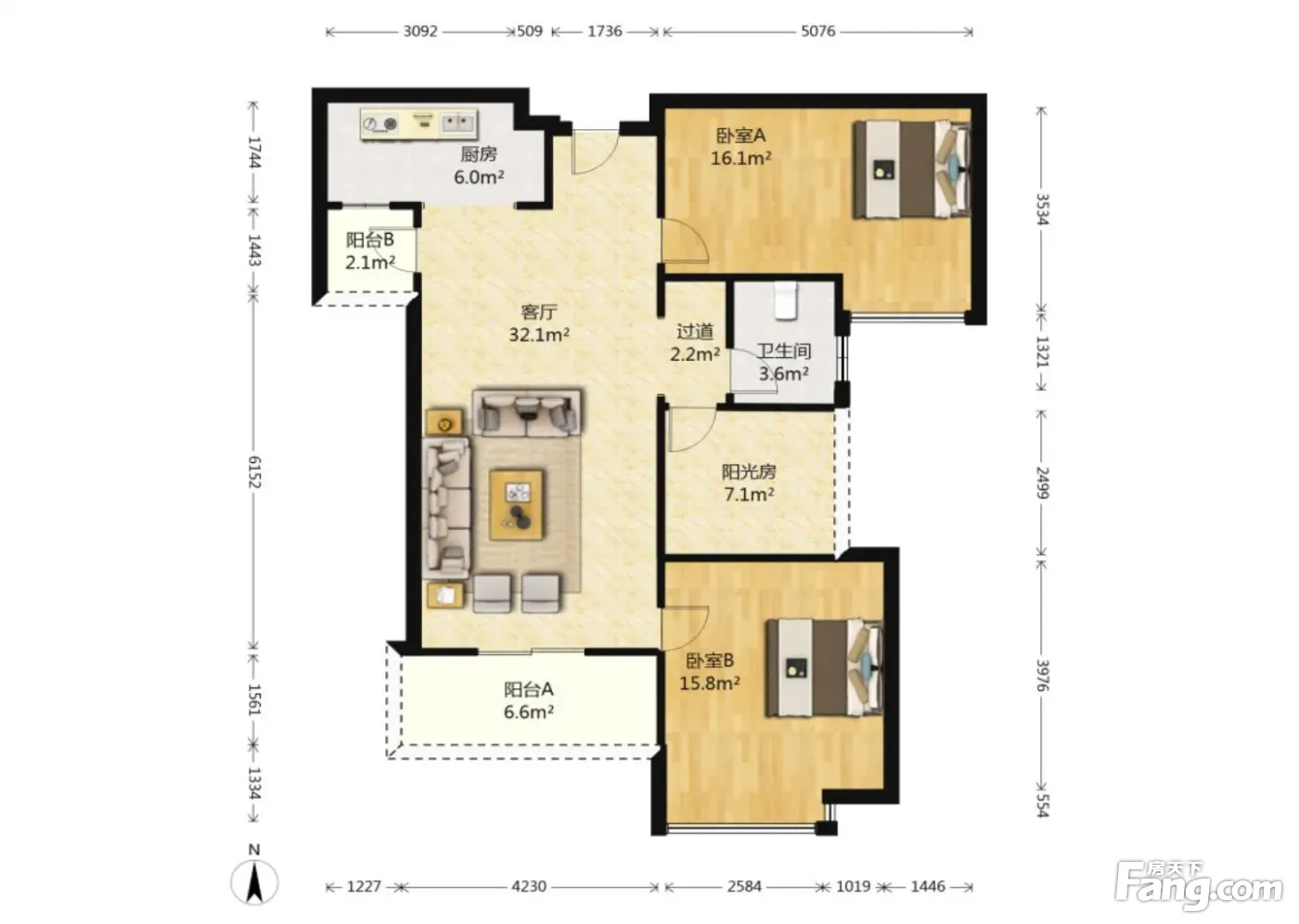 户型齐全,主打南北通透,全明格局二居