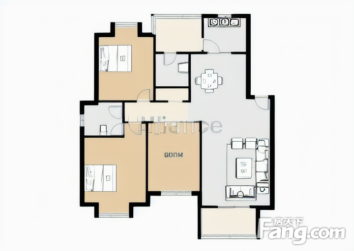 户型齐全,主打户型方正,明卫,明厨,双卧朝南,主卧朝南三居