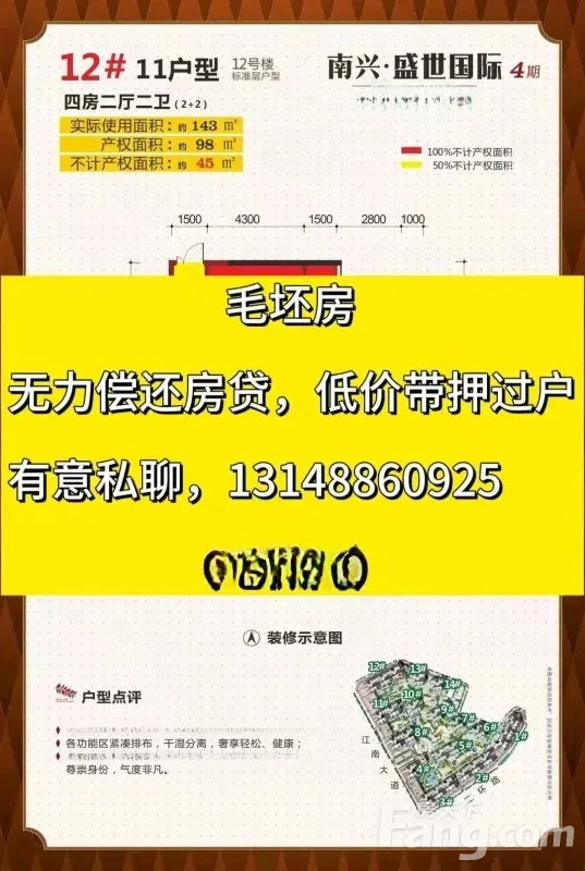 江南区 南兴盛世国际 4室2厅 143.00㎡ 20万