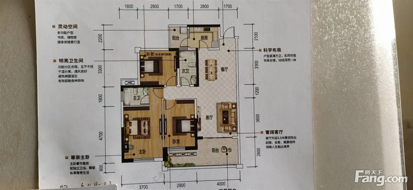 户型齐全,主打客厅朝南,主卧带卫,双阳台,明厨明卫,餐客分离四居