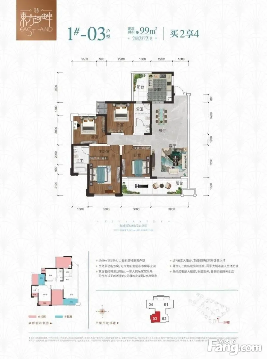 玉东新区项目万昌东方河畔99平做4房朝南