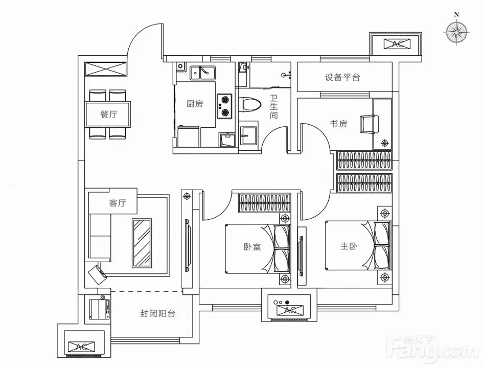 户型齐全,主打南北通透,全明格局,动静分离,三开间朝南,带衣帽间,U型厨房三居