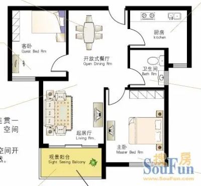 户型齐全,主打南北通透,厨卫不对门,主卧朝南二居