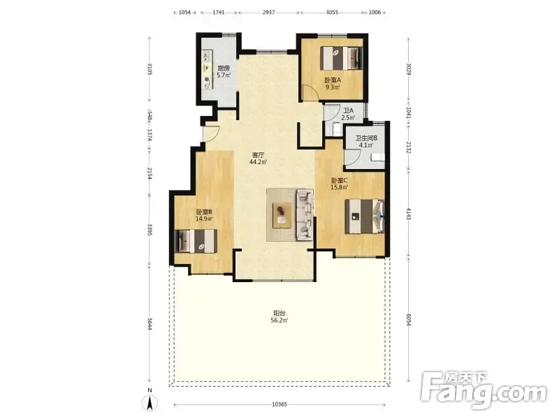 户型齐全,主打南北通透,全明格局,三开间朝南,U型厨房,大面宽阳台三居
