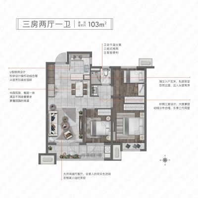 户型齐全,主打南北通透,户型方正三居