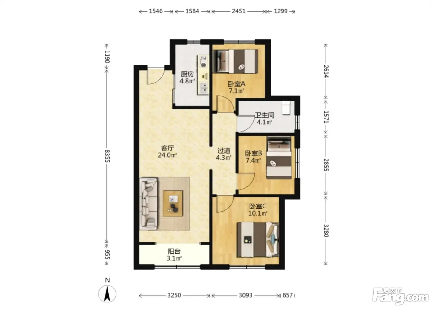户型齐全,主打南北通透,客厅朝南,主卧朝南,卧室带阳台,双阳台三居