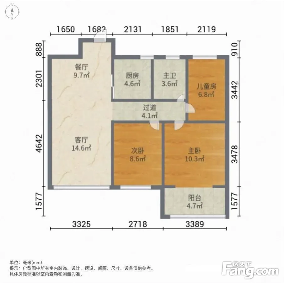 户型齐全,主打南北通透,全明格局,户型方正,动静分离,卧室朝南,主卧朝南三居