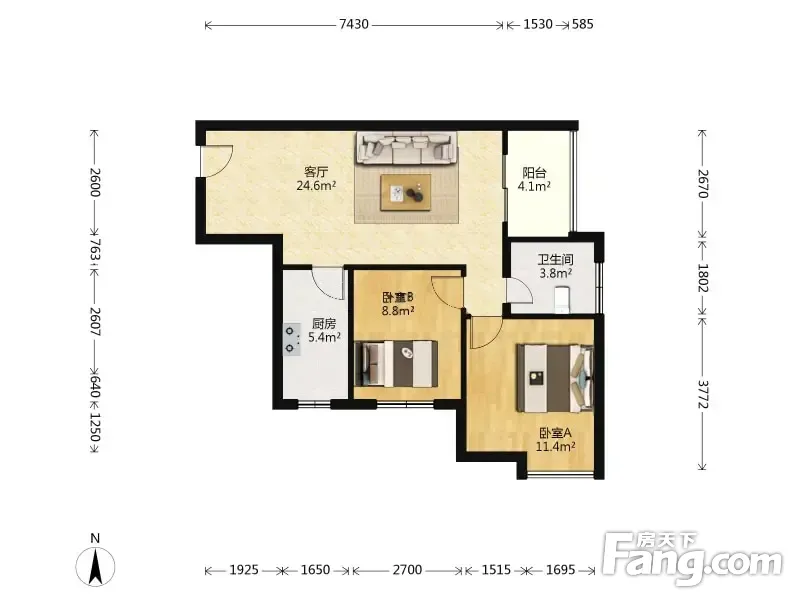 祥隆天合城 2室1厅 71.54平