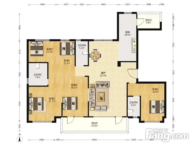碧桂园凤凰琉璃海 5室2厅 222.21平
