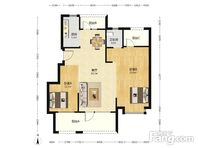 户型齐全,主打南北通透,双阳台三居