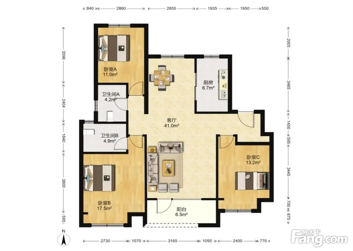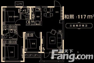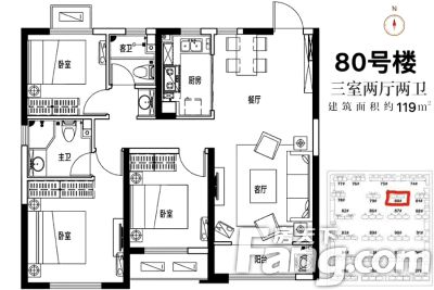 户型齐全,主打南北通透,客厅朝南,主卧朝南,卧室带阳台,双阳台三居