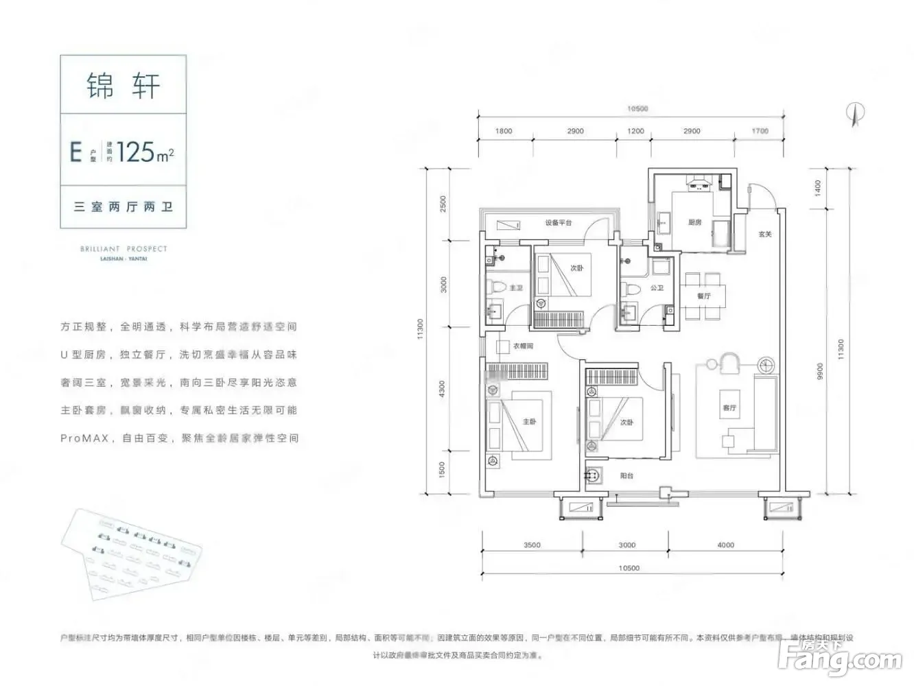 户型齐全,主打全明格局,户型方正,主卧套间,观景飘窗,独立衣帽间,独立餐厅,明厨,明卫三居