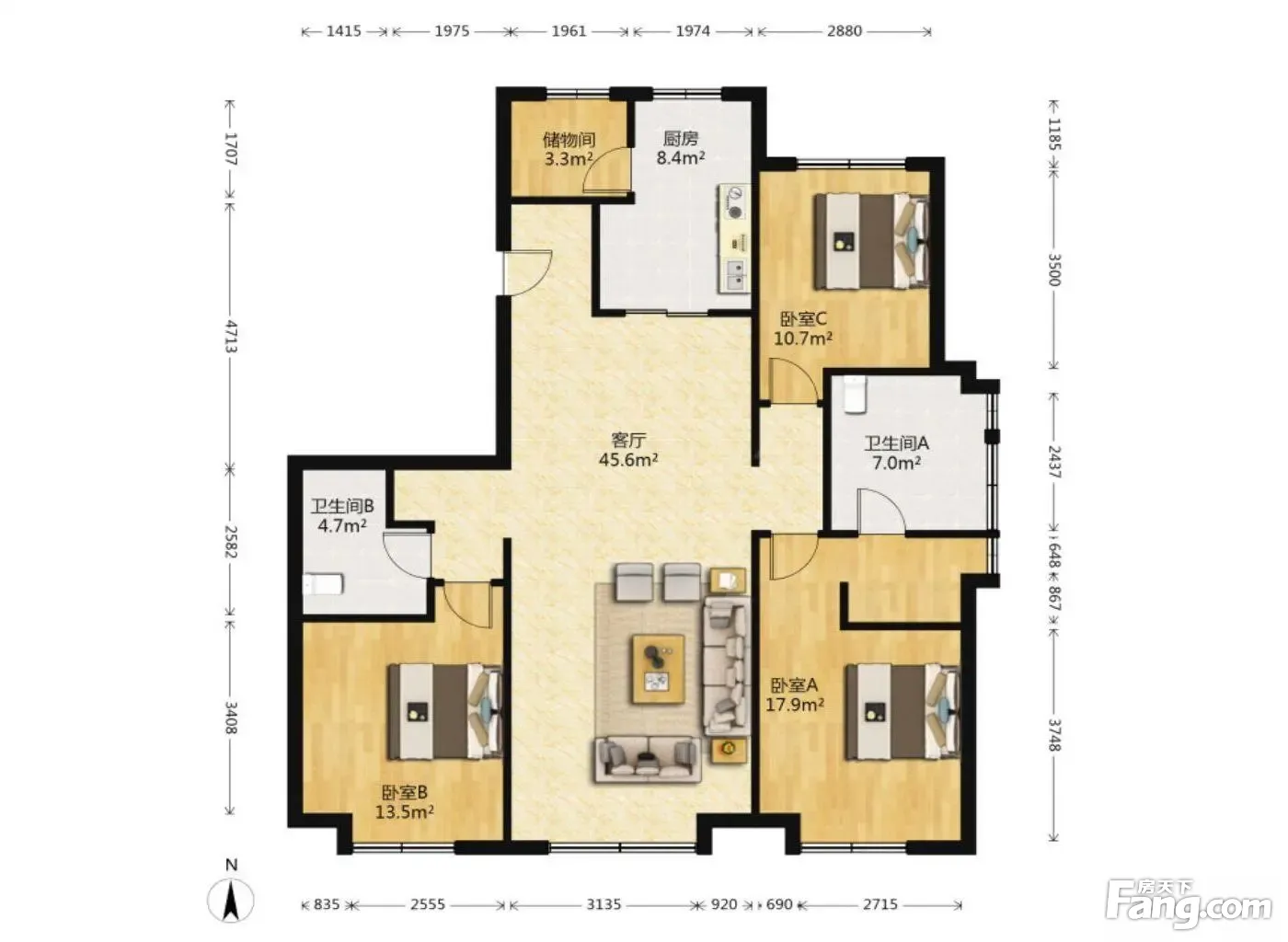 3室1厅2卫