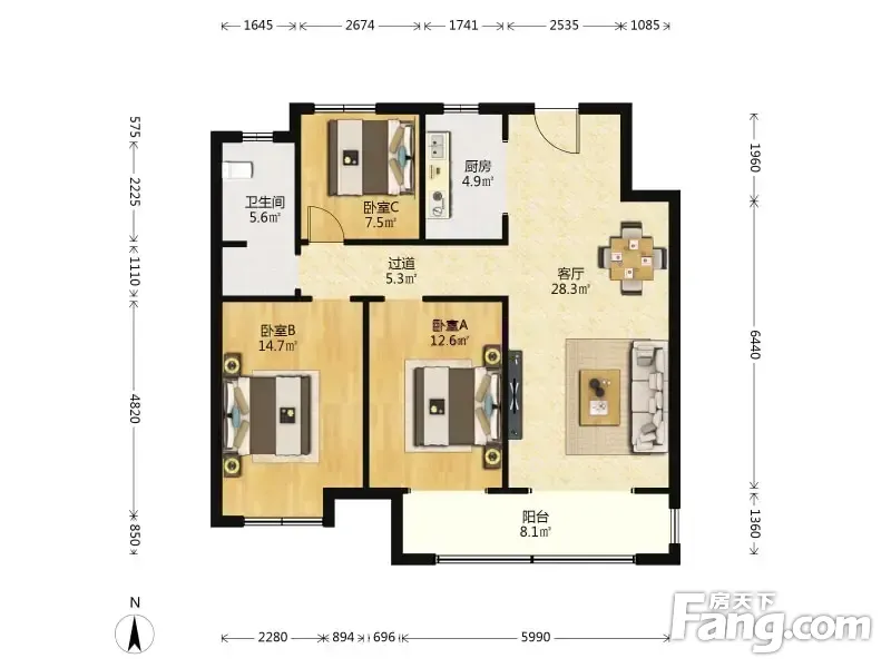 户型齐全,主打南北通透,卧室朝南三居