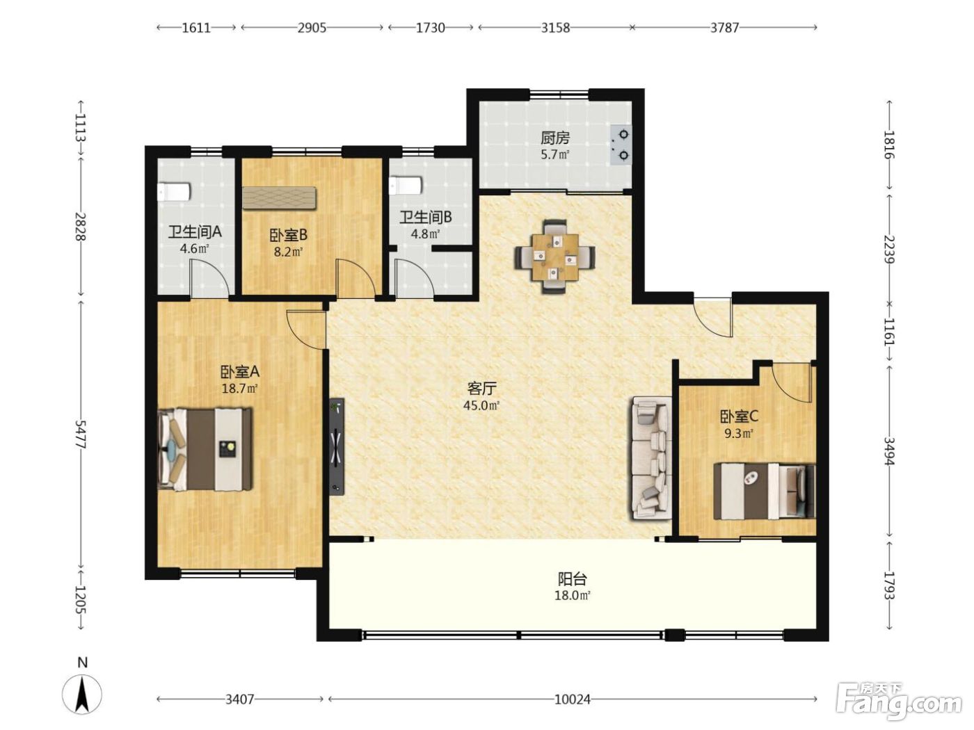 户型齐全,主打南北通透,户型方正,动静分离,采光充足,带衣帽间,明厨明卫,干湿分离,大面宽阳台三居