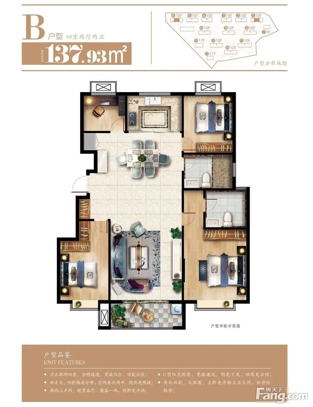 户型齐全,主打南北通透,全明格局,户型方正四居