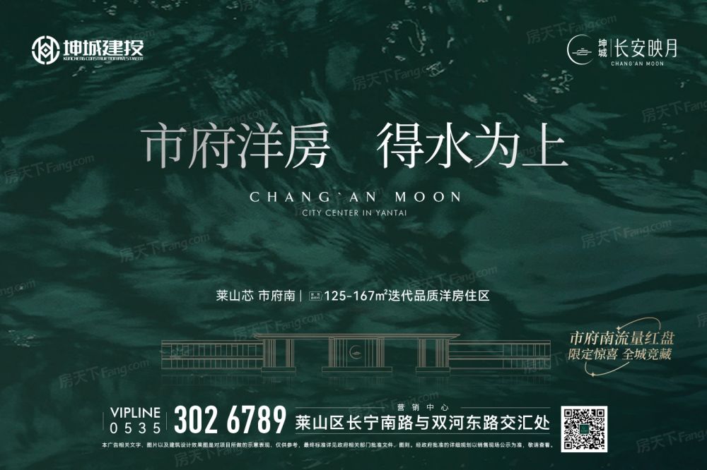 【项目地址】莱山区长宁南路与双河东路交汇处 【开发企业】烟台绿霖置业有限公司 【 投 资 商 】烟台坤城建设投资有限公司 【规划户数】464户 【 容 积 率 】2.1 【住宅类型】6栋11层,2栋18层 【产品类型】125-167㎡三室、四室 【 层 高 】11层洋房约3.1m,18层小高层约3.0m 【 车 位 比 】1 : 1.5