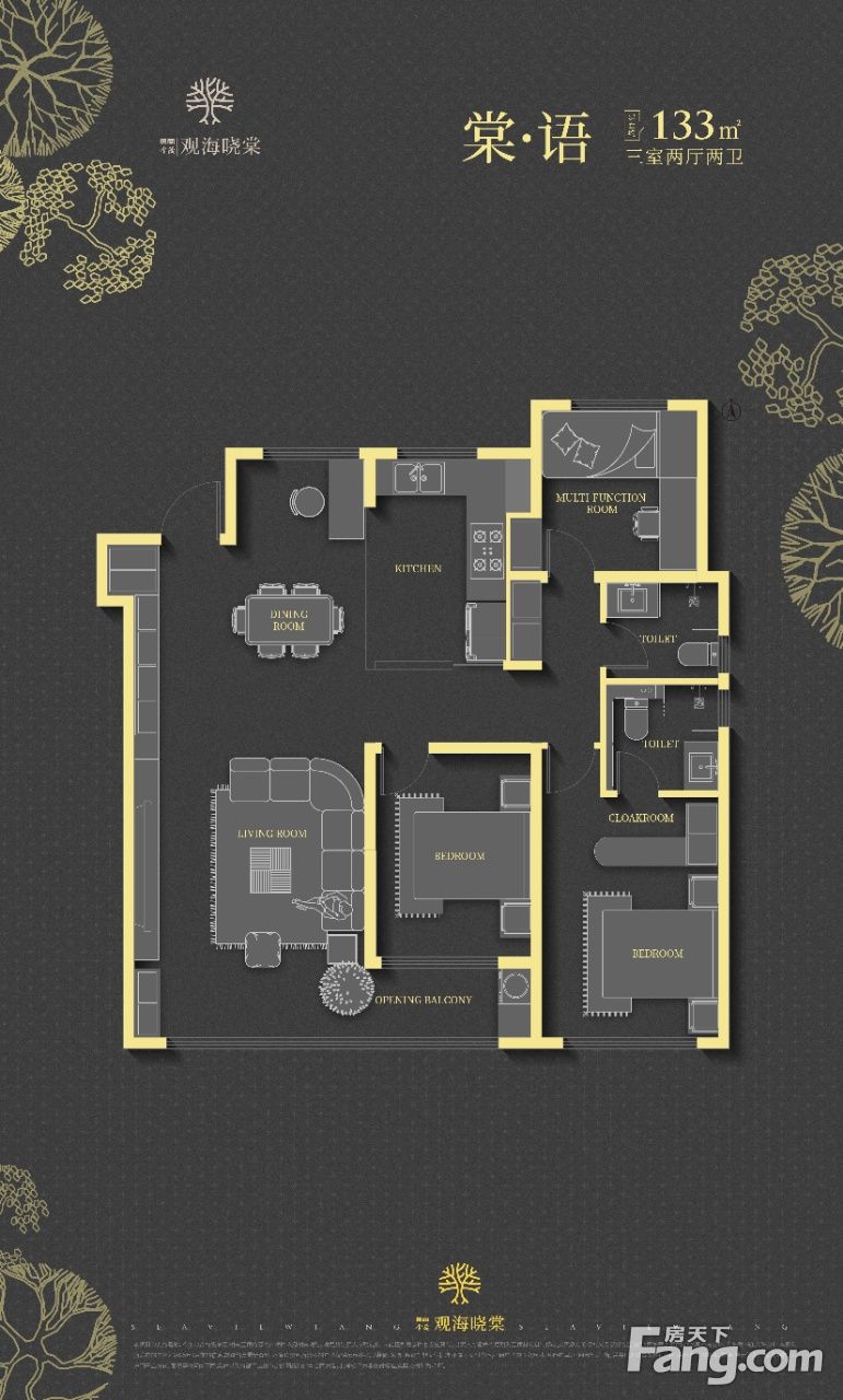 【项目地址】中国·烟台·观海路 【开发企业】烟台鲁茂置业有限公司 【规划户数】997户【得房率】95%-98% 【住宅类型】1栋17楼小高1栋23层平层8栋26层平层 【产品规划】建面约120-155㎡大平层 【 层 高 】3.0M【物业费】待定 【交房时间】2027年10月 【交付标准】毛坯交付