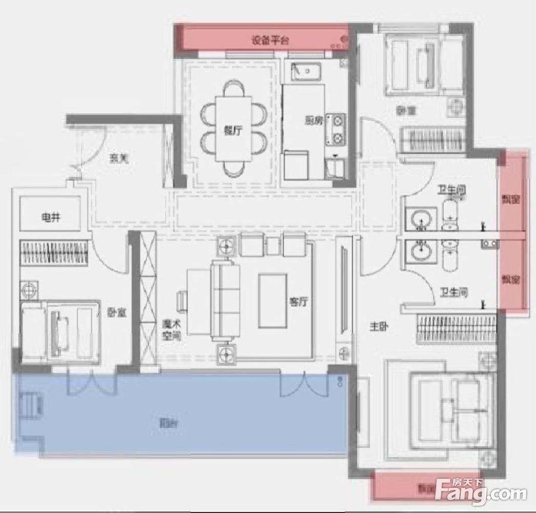 户型齐全,主打全明格局,高附赠空间,干湿分离,餐客分离,大面宽阳台三居