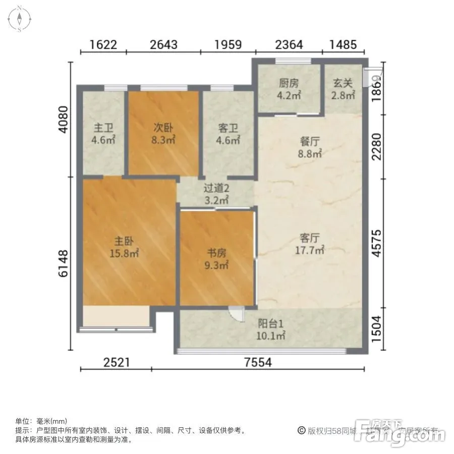 户型齐全,主打南北通透,户型方正三居