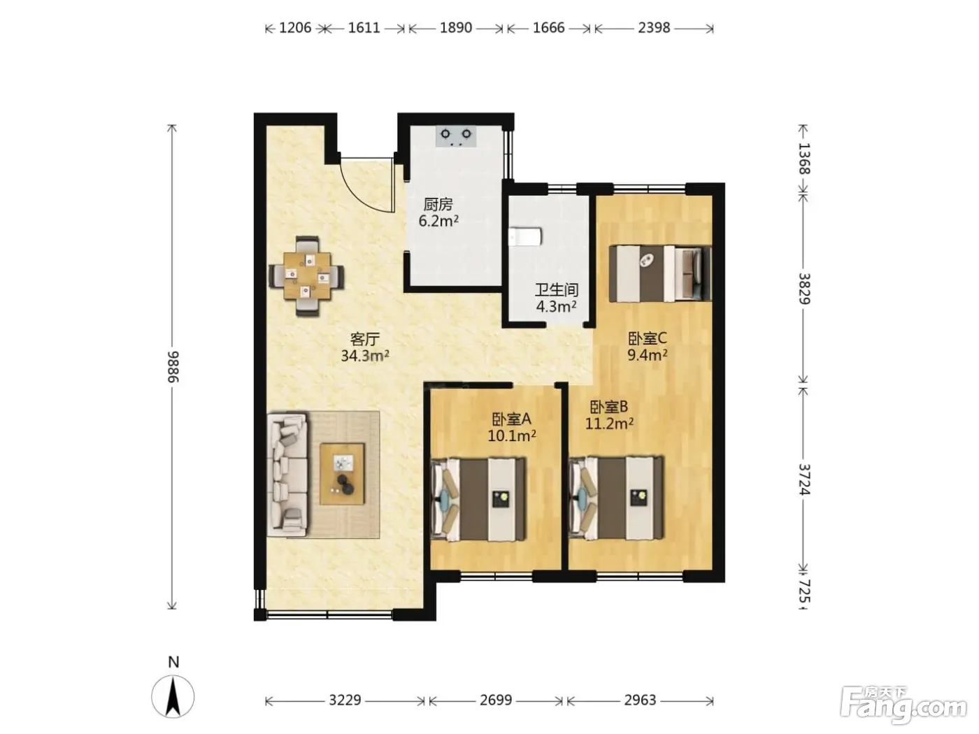 3室1厅2卫