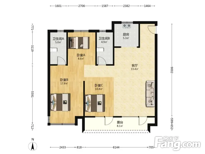3室2厅1卫