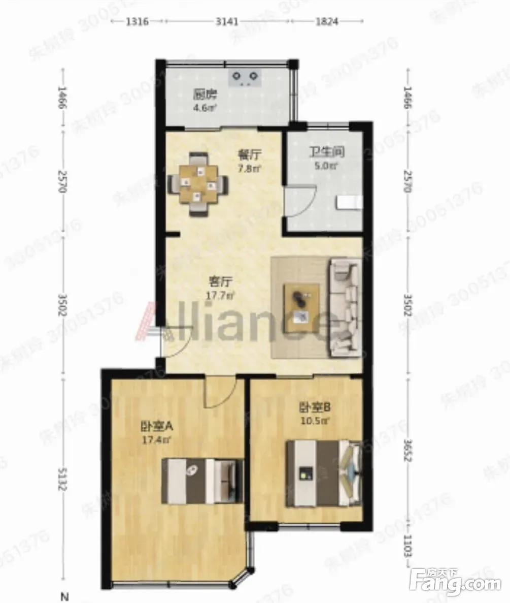 户型齐全,主打明厨,客厅朝南,双卧朝南三居