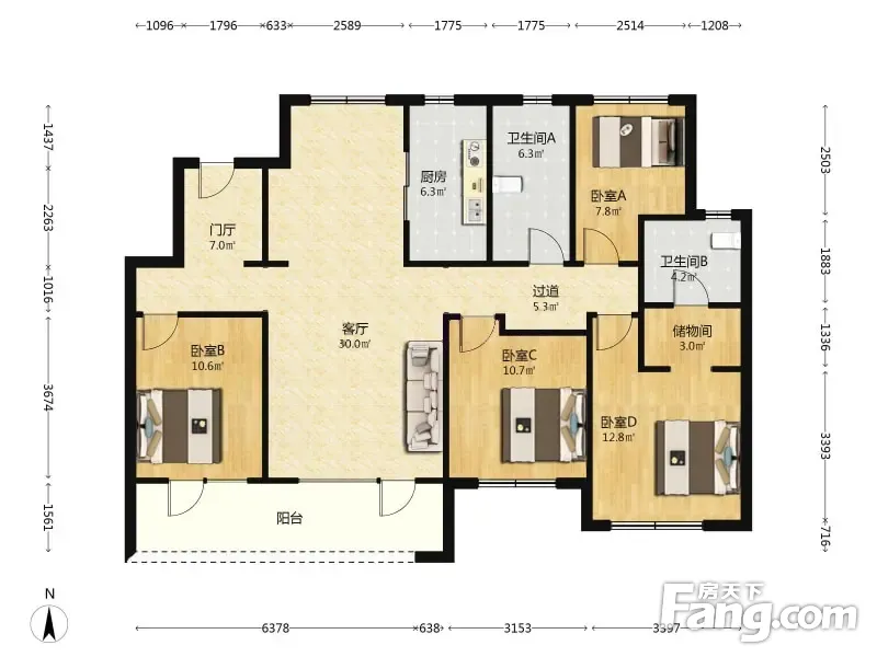 融创蓝天壹號 4室2厅 141.66平