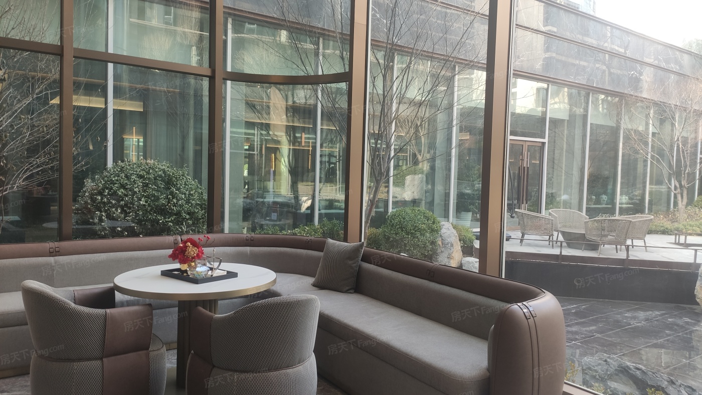 拥有高颜值外立面现代轻奢风格,镜面靓丽。光幕美学立面,一二层为石材,上部为水包砂灰色真石漆的沉稳与浅米色真石漆的温馨,局部细节深香槟金色铝条点缀 会所特邀请了绿城设计院操刀进行了优化提升 车库入口和单元大堂都采用铝板吊顶,顶面的设计巧妙地结合了镜面星空顶,车行道采用灯带感应。车库行车道我们用了永远不开裂、不掉色、恒久弥新的材质:超镜面彩磨石固化地坪;停车区:镜面固化地坪。 社区大门、地上单元门、地下单元门、楼层单元间,归家尊崇由此开启。我们项目采用地上、地下精装双入户大堂的设计,增加入户仪式感,坚持星级精工品质,进户门也采用大尺度开间(子母门)