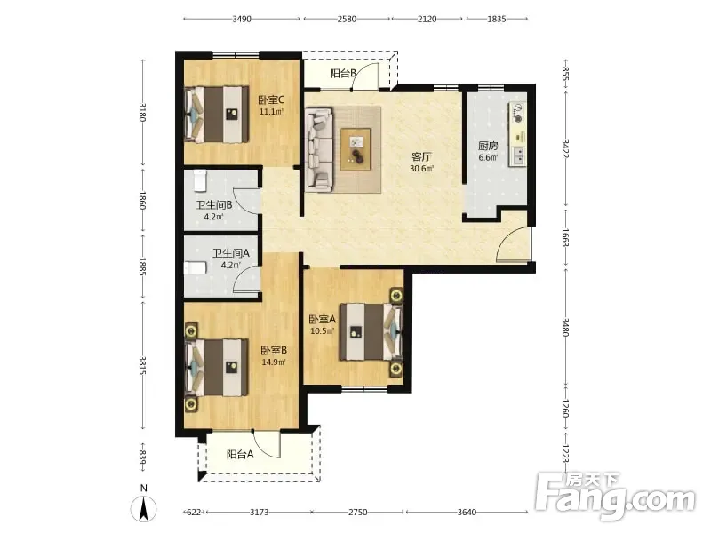 3室2厅1卫