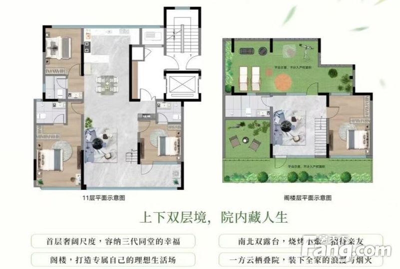 坤城长安映月 洋房顶复阁楼+南北露台 合计面积269平