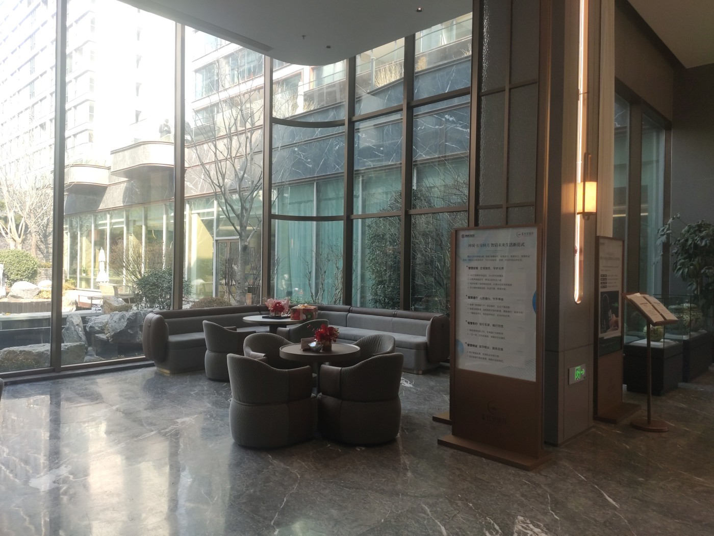 拥有高颜值外立面现代轻奢风格,镜面靓丽。光幕美学立面,一二层为石材,上部为水包砂灰色真石漆的沉稳与浅米色真石漆的温馨,局部细节深香槟金色铝条点缀 会所特邀请了绿城设计院操刀进行了优化提升 车库入口和单元大堂都采用铝板吊顶,顶面的设计巧妙地结合了镜面星空顶,车行道采用灯带感应。车库行车道我们用了永远不开裂、不掉色、恒久弥新的材质:超镜面彩磨石固化地坪;停车区:镜面固化地坪。 社区大门、地上单元门、地下单元门、楼层单元间,归家尊崇由此开启。我们项目采用地上、地下精装双入户大堂的设计,增加入户仪式感,坚持星级精工品质,进户门也采用大尺度开间(子母门)