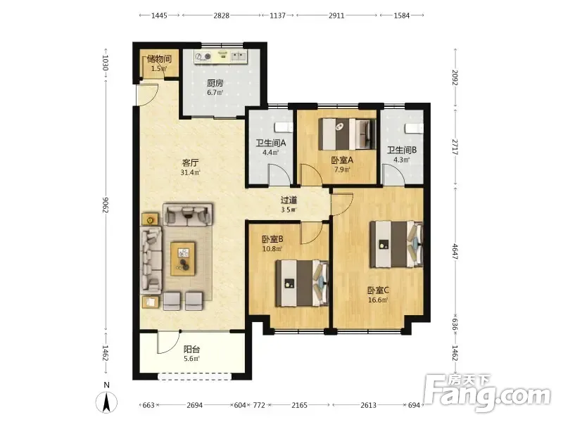 户型齐全,主打南北通透,全明格局,三开间朝南,独立玄关,主卧套间,U型厨房三居